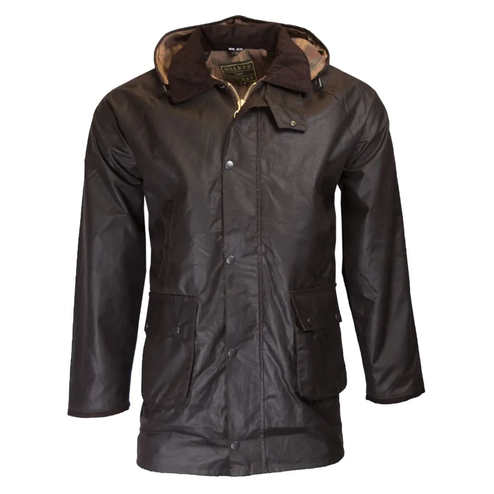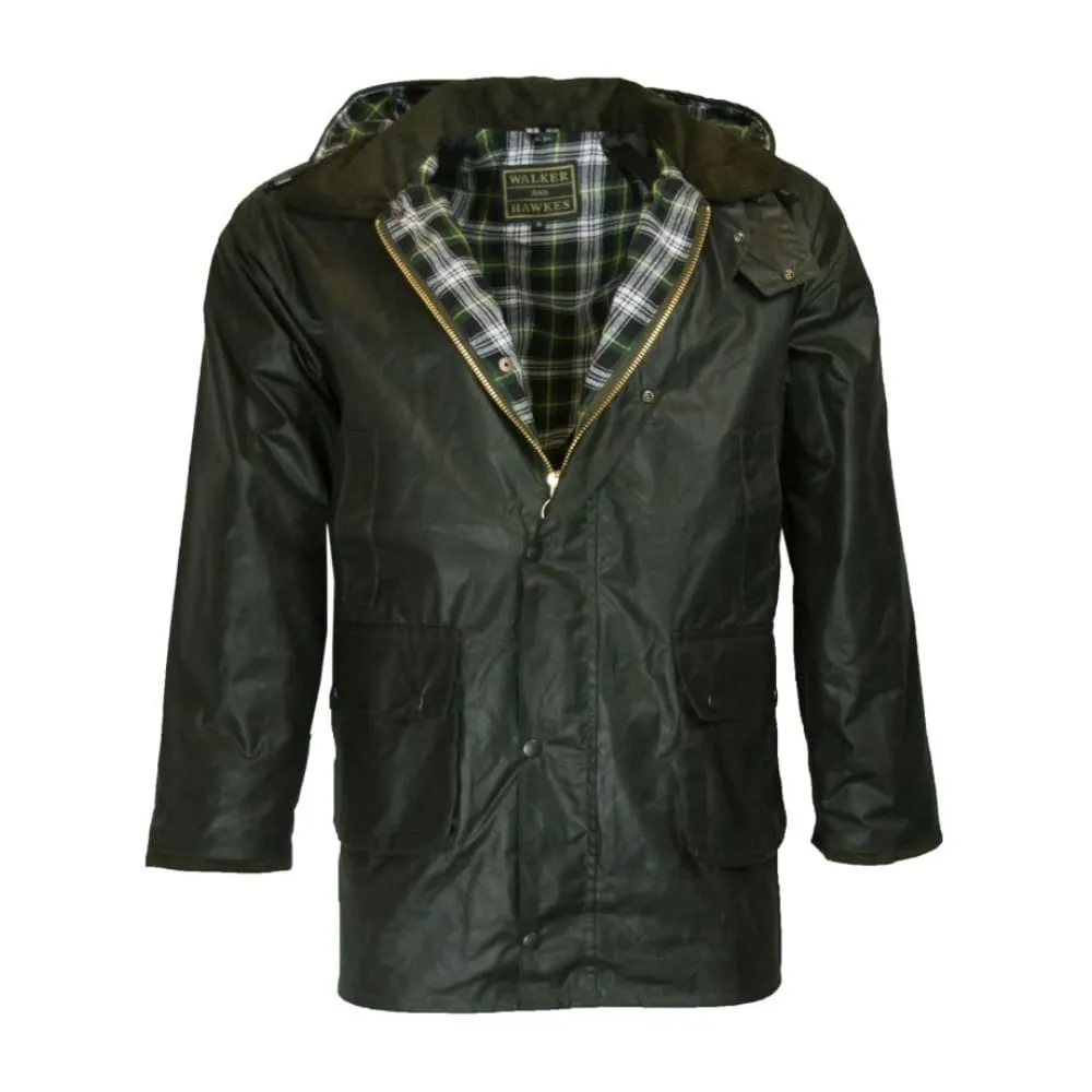 La chaqueta Walker and Hawkes Wax Cupra Poacher es una clásica chaqueta de campo confeccionada en algodón encerado. Cuenta con un bolsillo oculto en la espalda, accesible mediante dos grandes cremalleras con anilla. El forro interior es 100 % algodón con estampado de cuadros y puños interiores de punto para mayor calidez y protección.